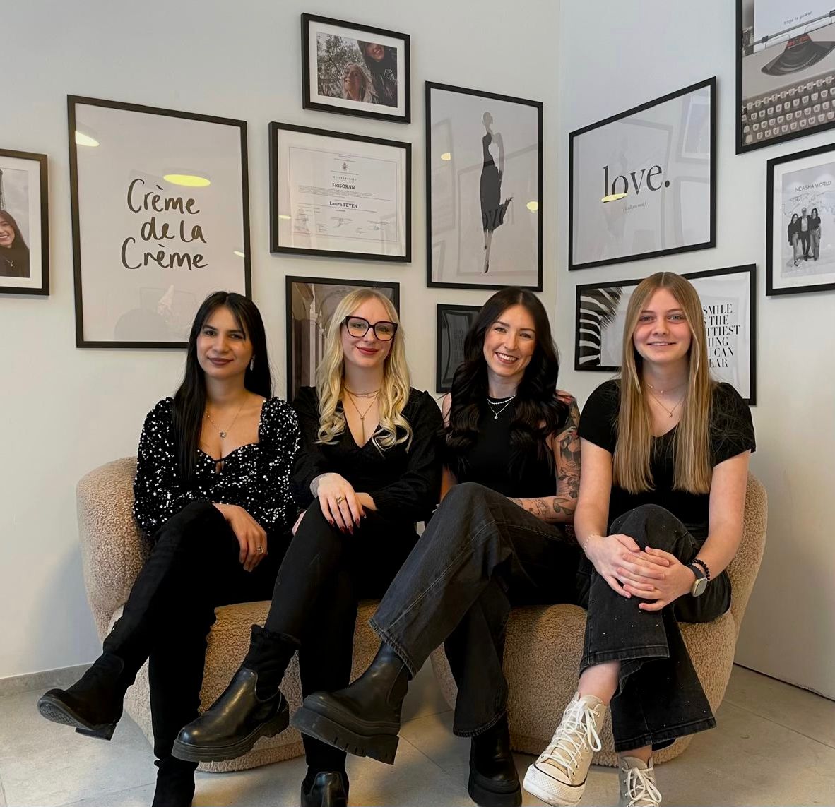 Das sind wir, Anna, Romy, Laura und Lulije, das Team von House of Hair. Vier junge, motivierte Menschen im Alter von 16-28 Jahren, mit der gleiche Leidenschaft- Haare. Wir könnten unterschiedlicher nicht sein, jedoch haben wir eine grosse Gemeinsamkeit. Das ist die Liebe zu unserem Beruf.